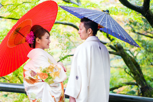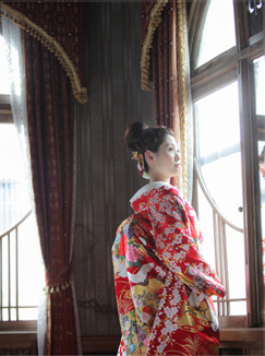 衣裳店直営のロケーションフォトショップとして、洋装・和装とも、高品質で様々なバリエーションをご用意しております。花嫁様にとっては、衣裳選びは重要なポイント。豊富な品揃えなので、きっとお気に入りの1着が見つかるはず。白ドレスやカラードレスは、バリエーション豊かの取り揃えており、和装は流行からレトロな物まで取り扱っております。